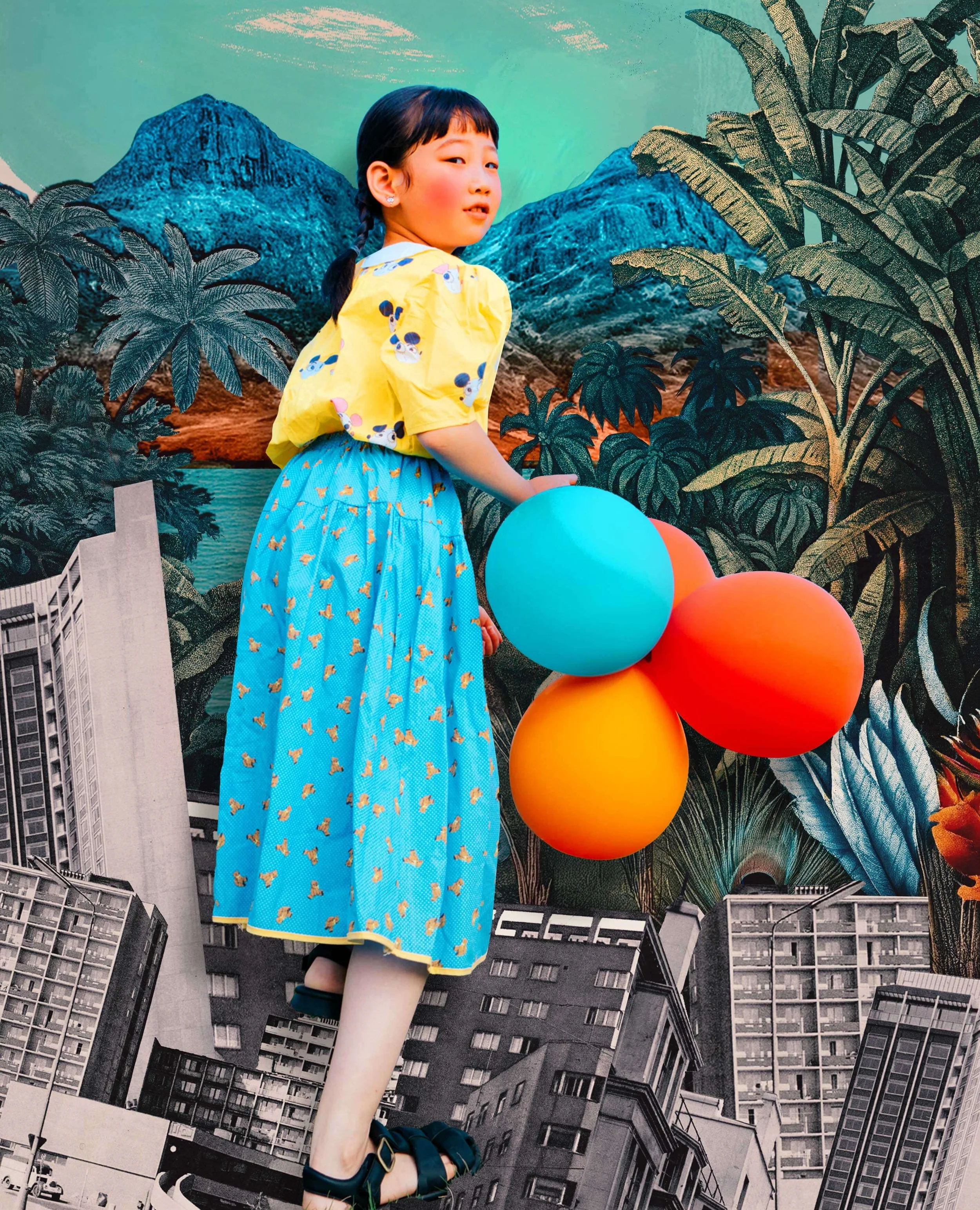 Sie trägt die Farben der Sehnsucht. Zwischen grauer Stadt und wilder Natur wird das Kind zur Grenzgängerin – Symbol für all jene, die spüren, dass das Leben draußen beginnt. Wer die Stille kennt, will nicht zurück in den Lärm. Dieses Bild erzählt vom Aufbruch: leise, entschieden, voller Hoffnung.